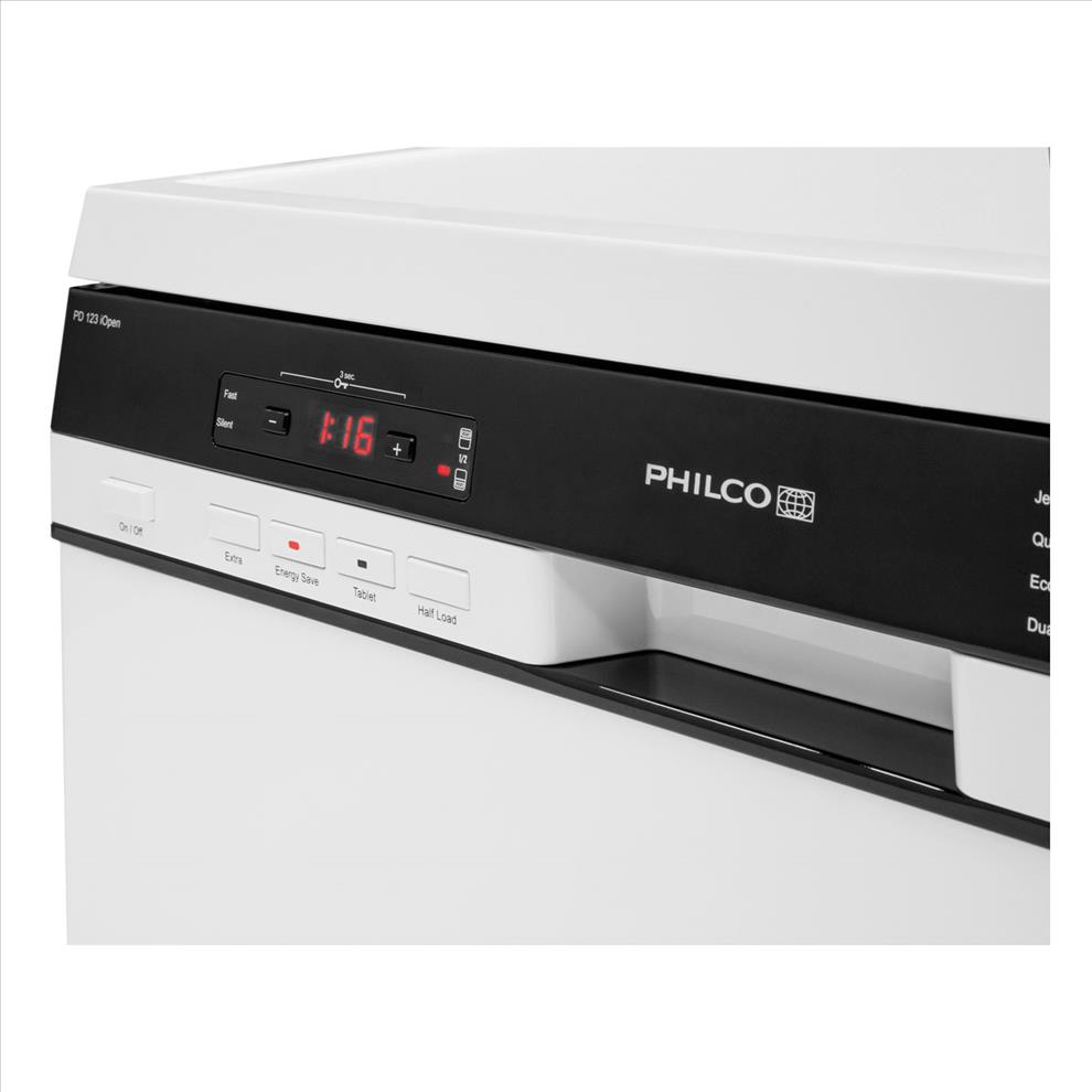 Myčka PD123iOPEN se řadí do energetické třídy A+++ je vybavena funkcí automatického otevírání dveří po dokončení programu.