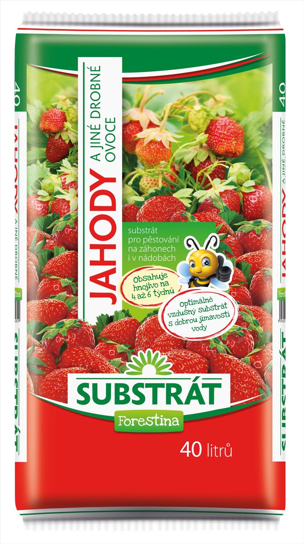 Substrát pro jahody a jiné drobné ovoce je určen pro sázení a přesazování všech druhů jahodníků v pěstebních nádobách ale i na volné ploše. Je vhodný rovněž i pro drobné ovoce jako je např. rybíz, josta, angrešt nebo maliny.