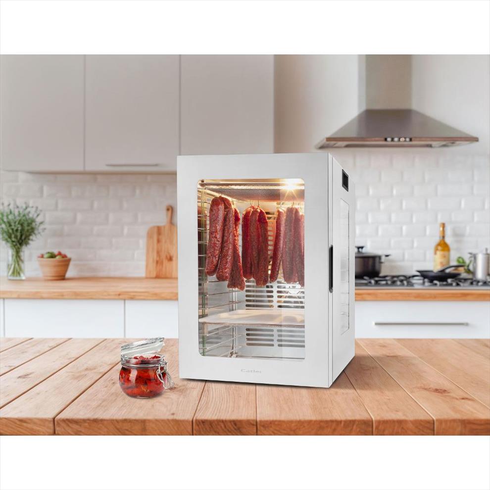 Díky širokému teplotnímu spektru 35–75 °C a možnosti nastavit provozu až na 48 hodin zvládne sušička Catler FD 4012 zpracovat prakticky jakýkoliv druh potravin – od nasbíraných hub až po šťavnaté plody. S 10 přednastavenými automatickými programy zvládnete od křupavých ovocných plátků přes voňavé domácí müsli až po lahodné sušené maso či zdravé semínkové krekry skutečně vše. Už žádné složité nastavování, jen jednoduché stisknutí tlačítka a máte hotovo. A pro opravdové dobrodruhy v kuchyni přichází sušička s dalším překvapením – zvládne i výrobu domácích klobásek. Prostě je zavěsíte a necháte přístroj, ať si s nimi sám poradí.