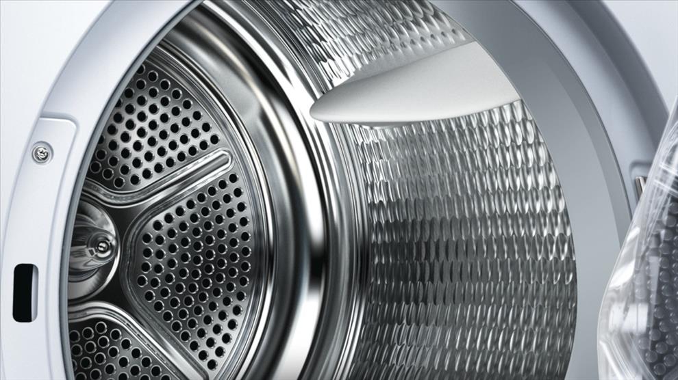 Systém šetrného sušení SensitiveDrying: velký nerezový buben se speciální strukturou a unašeči s měkkým povrchem pro jemnou péči o prádlo