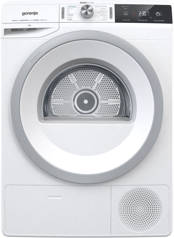 Volně stojící kondenzační sušička s tepelným čerpadlem, náplň prádla pro sušení 1-8 kg, Energetická třída: A+++ , IonTech (vyhlazení vláken ionizátorem vzduchu), SteamTech parní generátor, Invertorový motor PowerDrive.