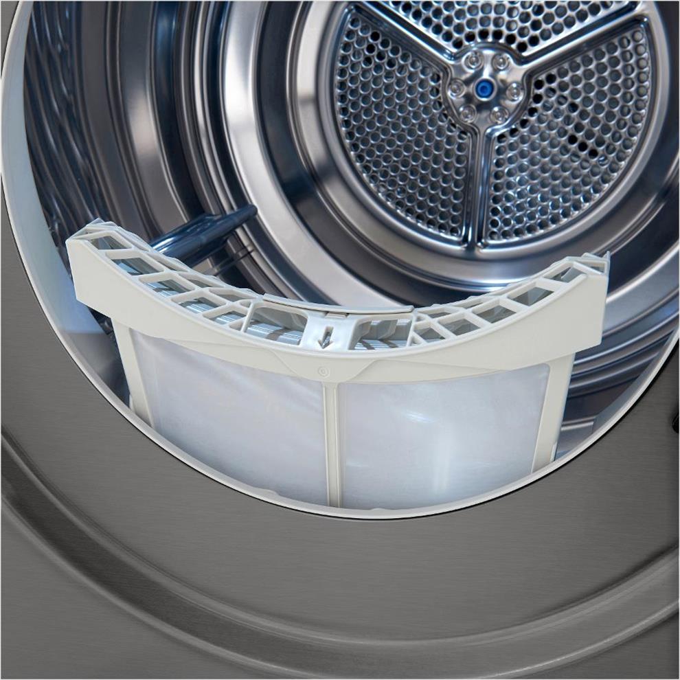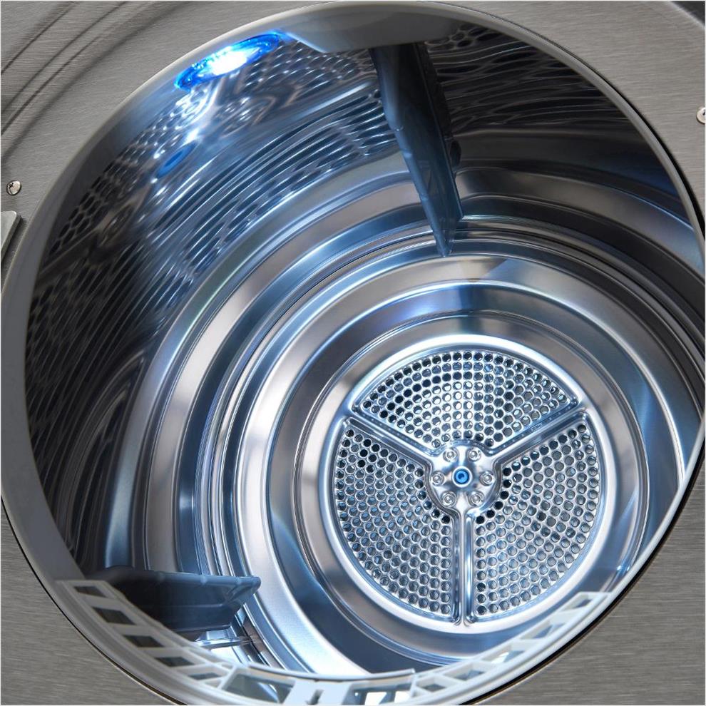 Volně stojící kondenzační sušička v energetické třídě A+++ a stříbrném provedení pojme až 9 kg prádla a nabízí 13 programů sušení. LG RC91V9EV2N disponuje funkcí automatického čištění kondenzátoru a má inteligentní elektronický systém sušení.