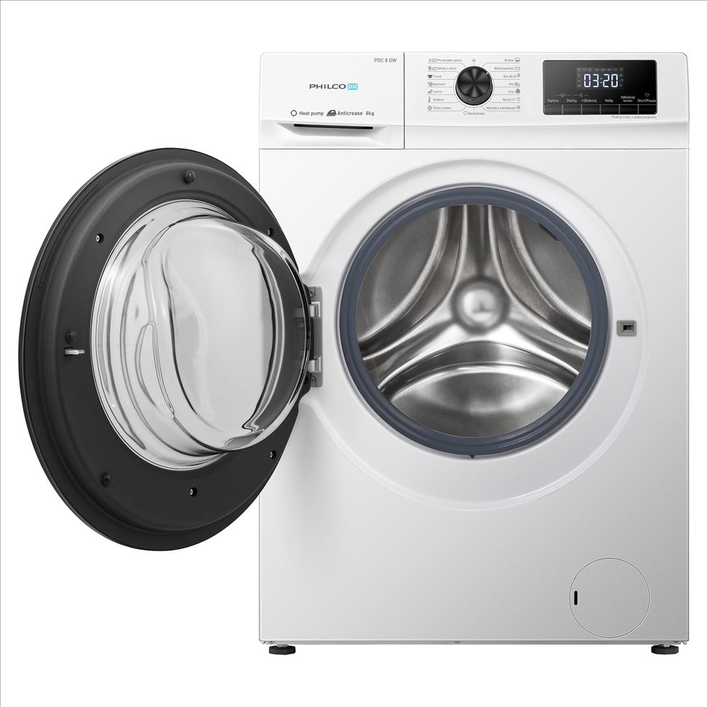 Sušička prádla Philco PDC 8 DW je díky kapacitě 8 kg ideální pro rodiny s větším množstvím prádla. Využívá technologii tepelného čerpadla, která šetří energii a náklady na elektřinu, a umí nastavit úroveň sušení tak, aby vám šetřila práci! Úsporná a praktická