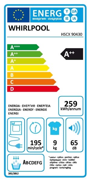 Tento model s kapacitou 9 kg je v energetické třídě A++, což znamená, že spotřebuje až o 50 % méně energie a času než spotřebič v energetické třídě A.
