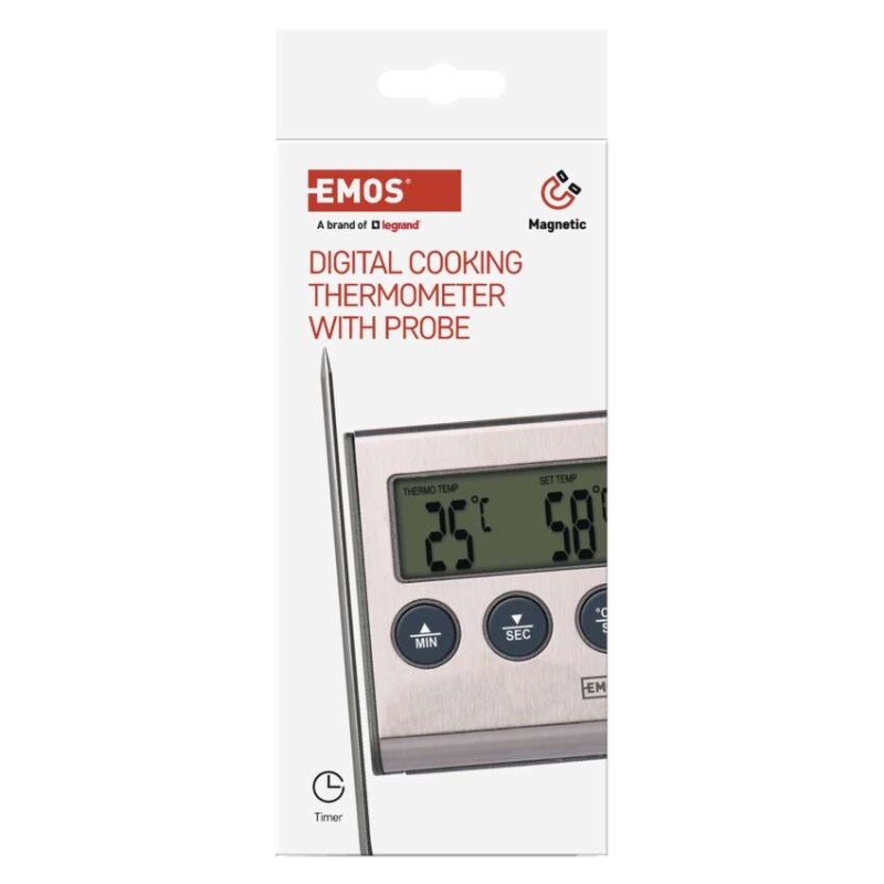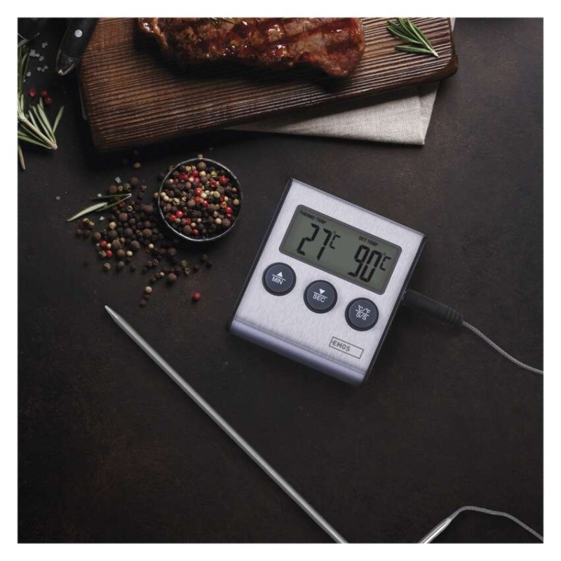 Připravte si dokonalé pokrmy díky přesnému digitálnímu kuchyňskému teploměru s minutkou. Teploměr E2157 měří sondou teplotu přímo uvnitř masa nebo jakýchkoli jiných potravinách. Je to tedy neocenitelný pomocník při venkovním grilování i domácím pečení, zejména masitých dobrot. Teploměr pracuje v širokém rozsahu měření teploty od -20 °C až do +250 °C.