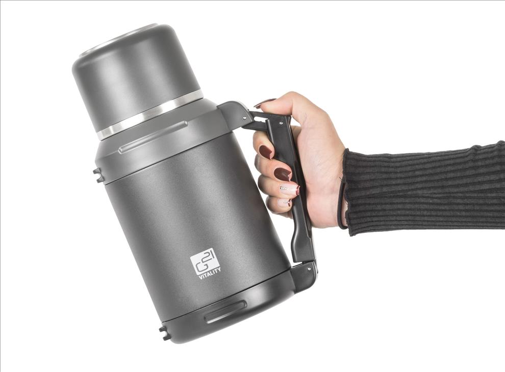 Termoska G21 je vyrobena z kvalitní nerezové oceli a díky dvojitým stěnám a těsnícímu víčku udrží teplotu nápoje po opravdu dlouhou dobu – horké až 12 hodin, studené až 24 hodin.