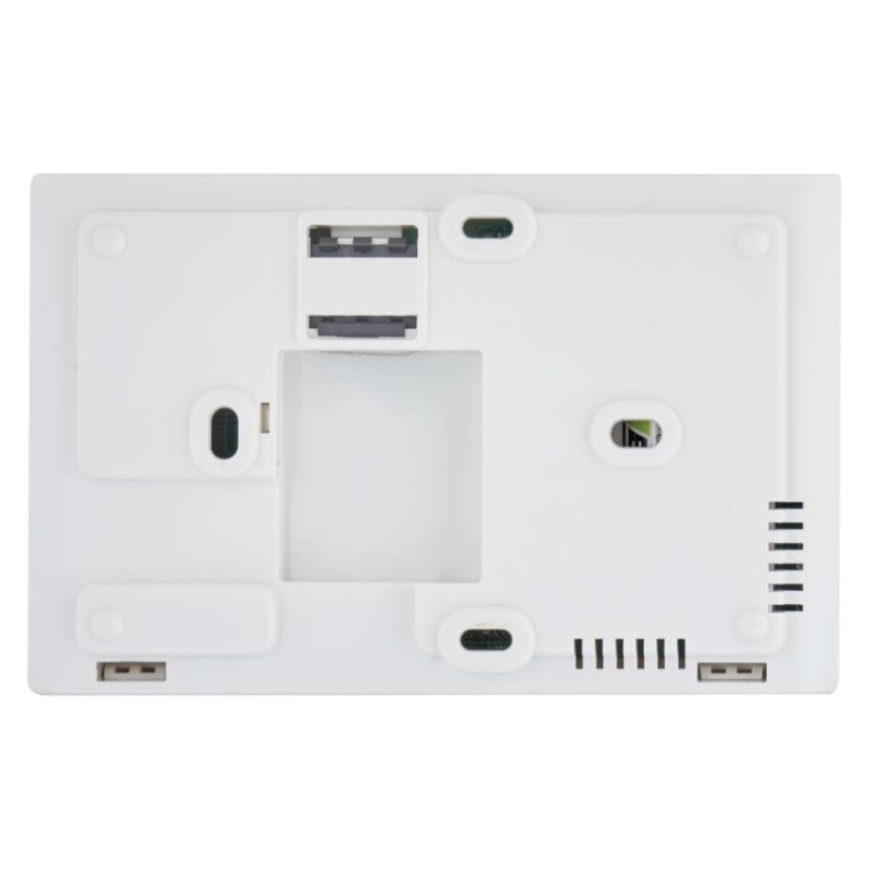Digitální termostat v bílé barvě a s rozměry 30 × 120 × 77 mm se hodí do každého interiéru.