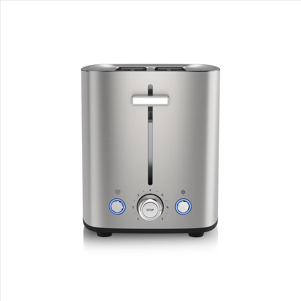 Automatické vypínání po dokončení opékání zajišťuje, že topinkovač se sám vypne, čímž minimalizuje riziko přehřátí a šetří energii. Praktické tlačítko pro okamžité přerušení procesu opékání vám dává možnost rychle zastavit provoz podle potřeby. Dále, mechanismus proti zaseknutí umožňuje snadné a bezproblémové vyjmutí topinek, zatímco vysoký zdvih usnadňuje bezpečné vyjmutí i menších kousků chleba, čímž se minimalizuje riziko popálení.