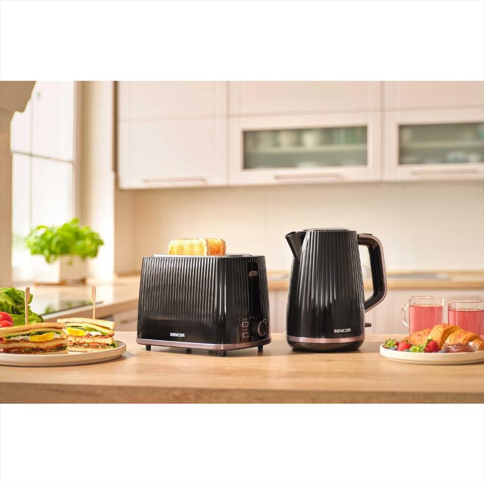 O perfektní snídani se postará snídaňový set moderních spotřebičů – 2 topinkovačů a konvice. Spotřebiče spolu dokonale ladí a díky svému jednotnému stylu se budou skvěle vyjímat na vaší kuchyňské lince.
