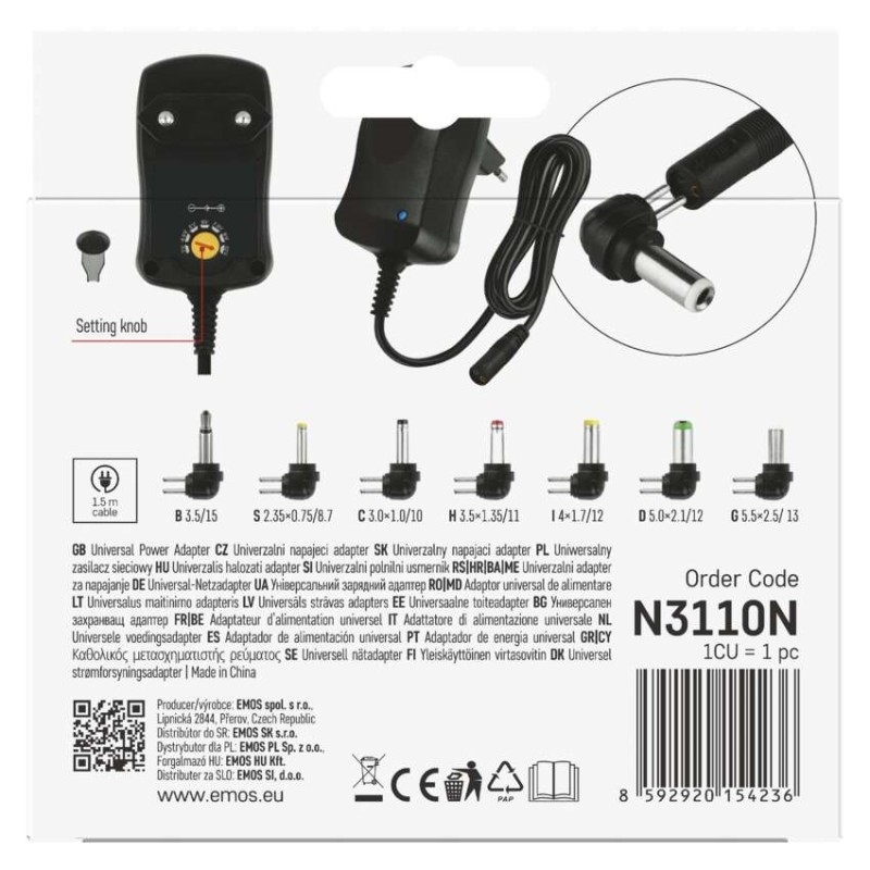 Vhodný pro digitální zařízení např.: přenosná rádia, modemy, nabíjecí svítilny, antény a set-top boxy, přenosné DVD přehrávače a další s odběrem až 600 mA. Až 7 možností nastavení výstupního napětí od 3 V do 12 V.
