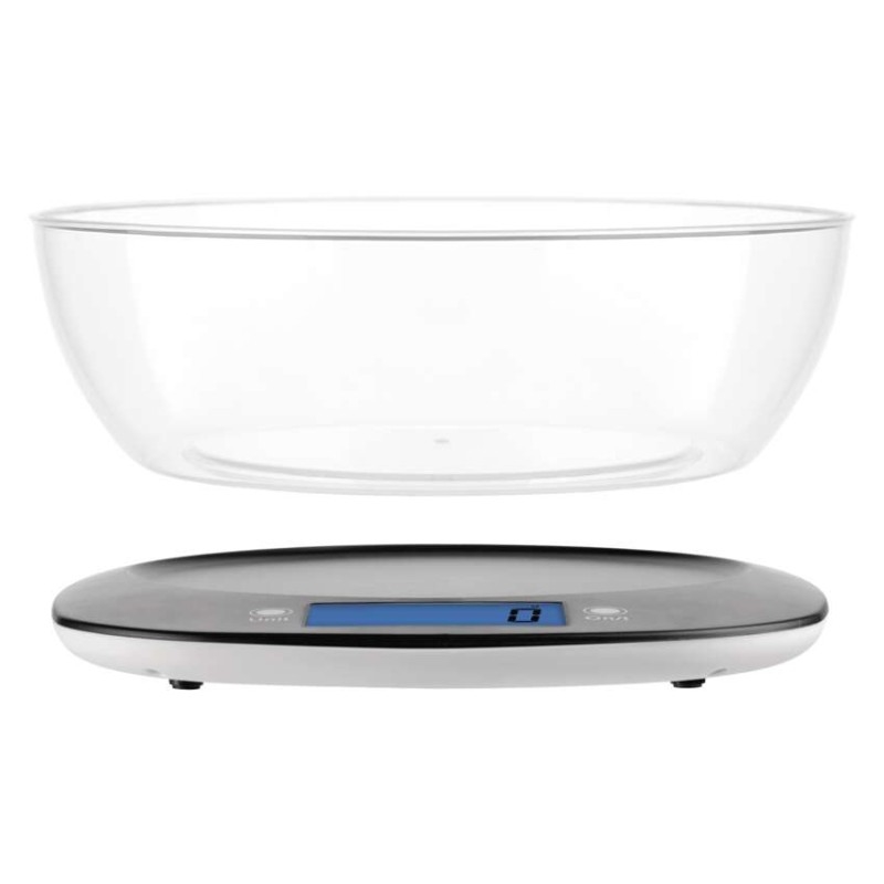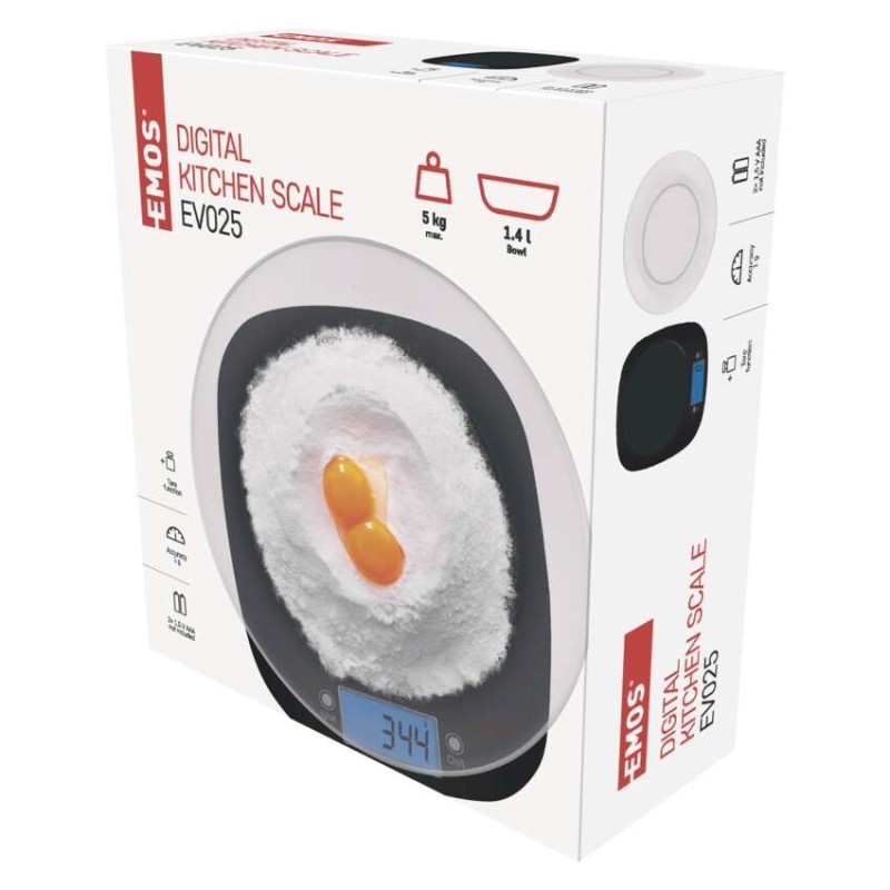 Součástí váhy je plastová miska, ve které můžete vážit cukr, ořechy, olej nebo porci zeleniny. Povrch vážicí plochy z ABS plastu je tvarován tak, aby misku udržel a zabránil sklouznutí. Potraviny můžete vážit také bez misky přímo na vážicí ploše nebo použít třeba talíř. Jednoduchý design váhy se hodí do každé moderní kuchyně. Pokud pečete často, váhu si nechte po ruce na kuchyňské lince.