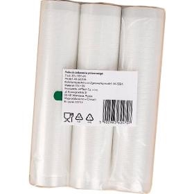 Fólie do vakuovačky. HUSLOG AK-540234 3ks. . Vakuové fólie jsou ideální pro vzduchotěsné balení masa, uzenin, ryb nebo sušeného ovoce a zeleniny. Fólie poskytuje ochranu proti bakteriím a mikroorganismům, což prodlužuje čerstvost, vůni, chuť a výživovou hodnotu pokrmu. Je ideálním řešením pro vaření metodou sous-vide/pomalé vaření. . 3 kusy fólie o rozměrech 20 x 300 cm. Kompatibilní s vakuovačkou Hoffen i Huslog AK-5334. Materiál PA + PE. . Barva transparentní