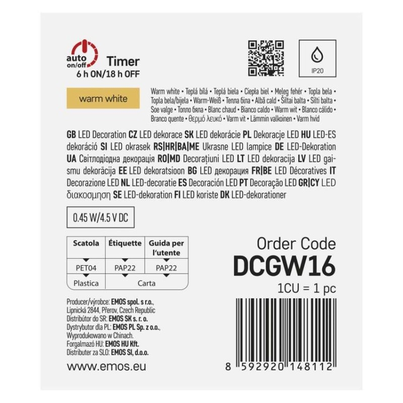 barva drátu: transparentní|barva světla: teplá bílá|časovač: ano|dálkový ovladač: ne|délka přívodu: 0,3 m|krytí: IP20|materiál: –|počet LED: 40|použití: vnitřní|příkon: 0,45 W|prodejní obal: 1 ks, krabice|produkt: girlanda|rozměr: 120 cm|typ napájení: baterie 3× AA (není součástí balení)|vstupní napětí: –|výstupní napětí: 4,5 V DC|záruční doba: 2 roky|zdroj svícení: LED|životnost: 10 000 hodin
