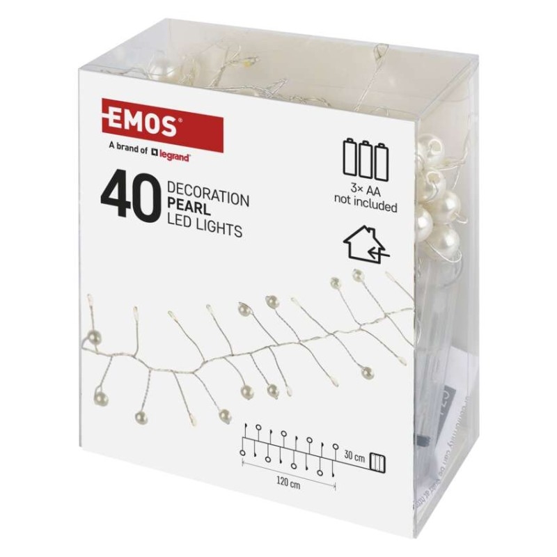 EMOS LED girlanda – perly, 1,2 m, 3x AA, vnitřní, teplá bílá, časovač