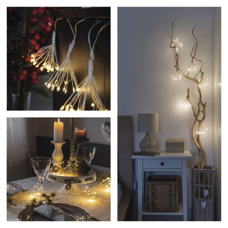 Vánoční LED řetězy "fireworks" z řady NANO jsou elegantním doplňkem, který se stane spolehlivým pomocníkem při tvorbě nejen vánočního aranžmá. Světelný trs vypadá jako odkvetlá pampeliška a díky jemnému, ultratenkému drátku krásně vyniknou jeho světelné části. Takto ozdobený stromeček bude vypadat netradičně a zároveň jej světelné trsy dokonale rozzáří.