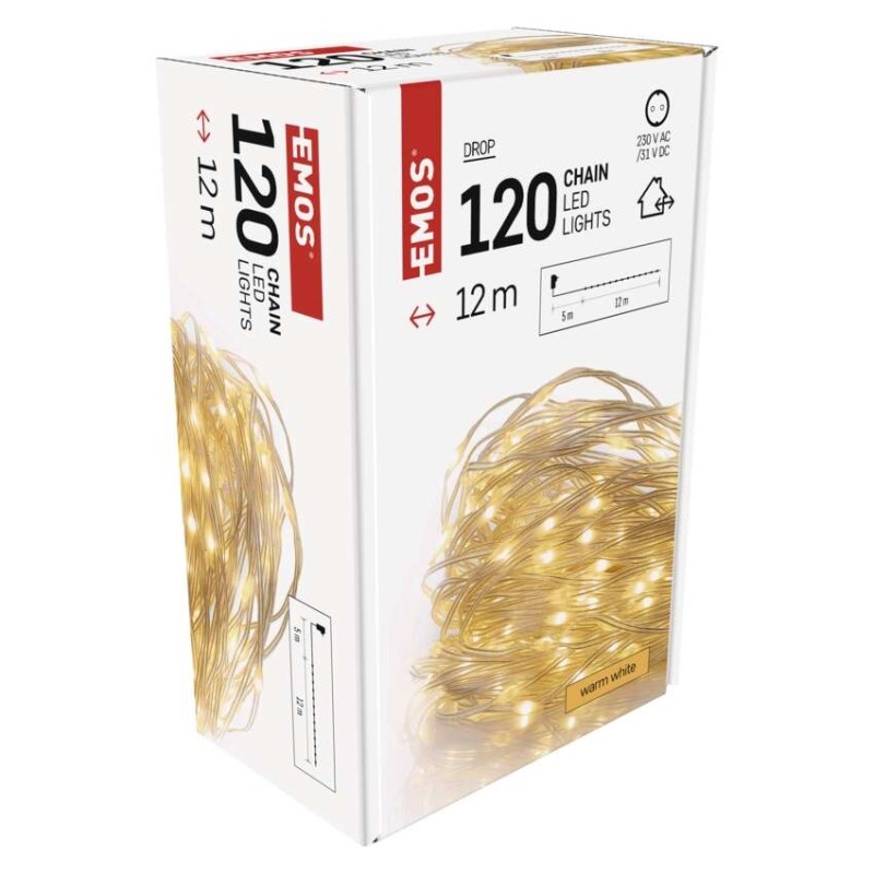 EMOS LED vánoční drop řetěz, 12 m, venkovní i vnitřní, teplá bílá, časovač