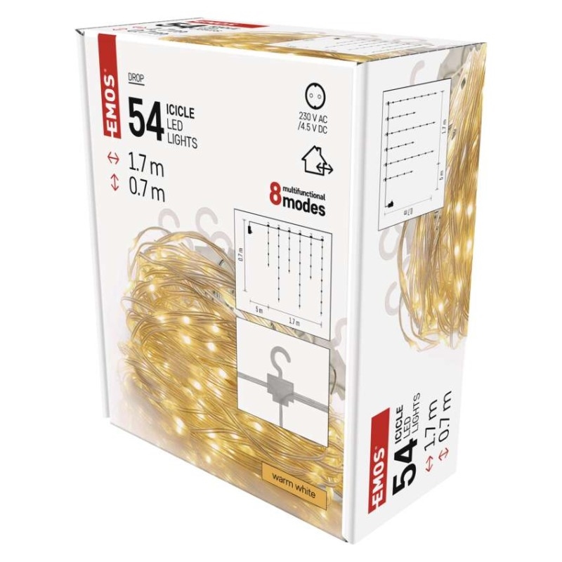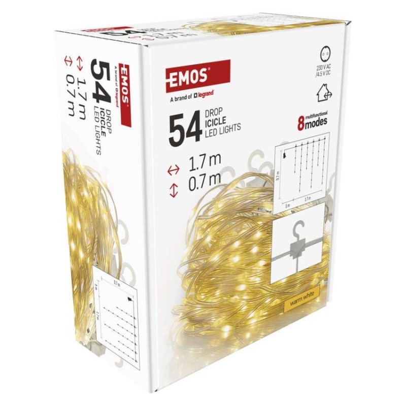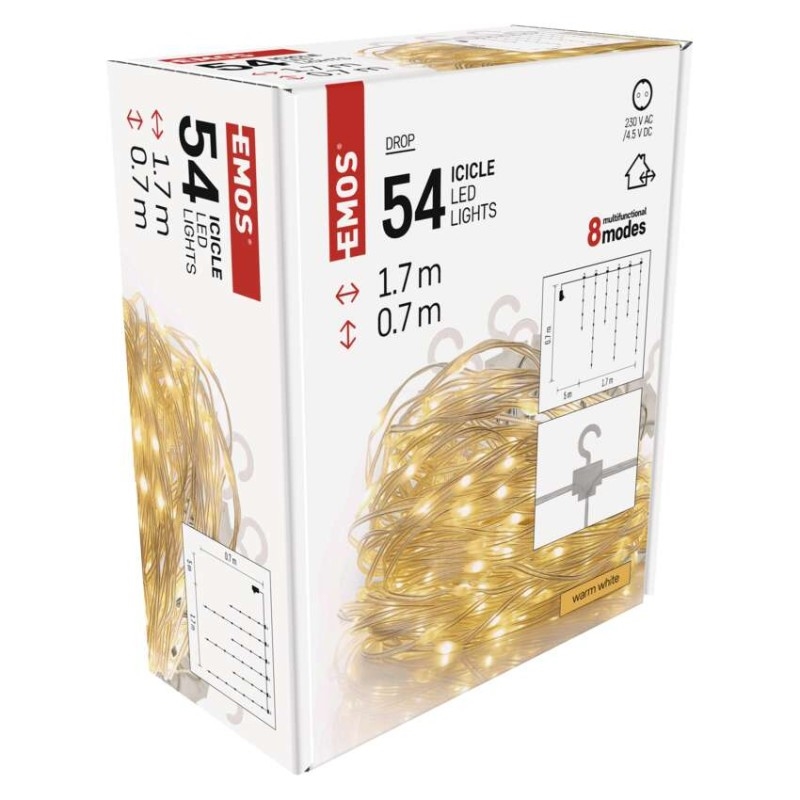 EMOS LED vánoční drop řetěz – rampouchy, 1,7 m, venkovní i vnitřní, teplá bílá, programy