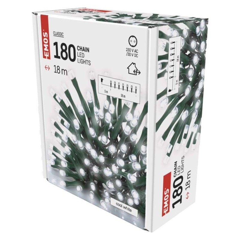 LED řetězy CLASSIC značky EMOS jsou nabízeny v několika tvarových variantách – klasické řetězy, clustery a krápníky. Jsou nepostradatelné pro vytvoření pravé sváteční atmosféry. Skvěle se budou vyjímat na tradičním vánočním stromečku, hodí se k výzdobě nábytku, zábradlí, trámů či dvěří v interiéru. Použít je můžete i v exteriéru, kde rozzáří vaše keře, stromy, pergoly, altánky apod.