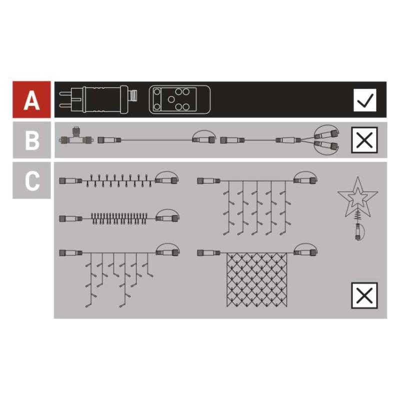 Ještě předtím, než začnete s nákupem konkrétních typů LED řetězů, si nezapomeňte zakoupit i napájecí adaptér, který umožní zapojení světel do elektrické sítě. Adaptér je určen pro venkovní i vnitřní použití a disponuje krytím IP44. V nabídce naleznete varianty s časovačem, dálkovým ovladačem i bez něj.