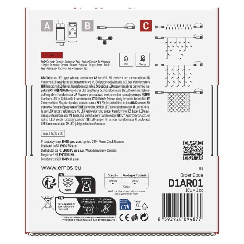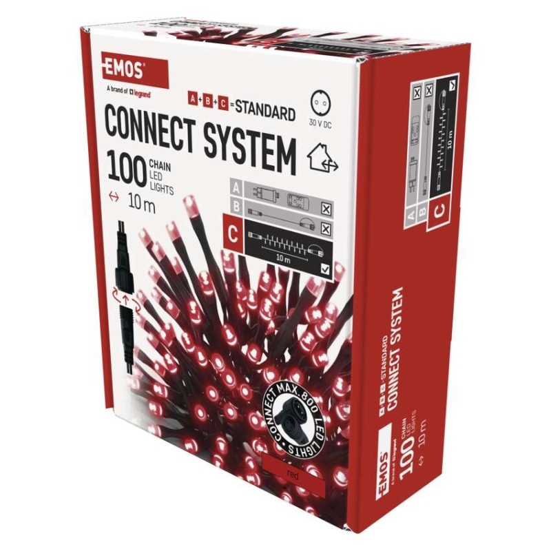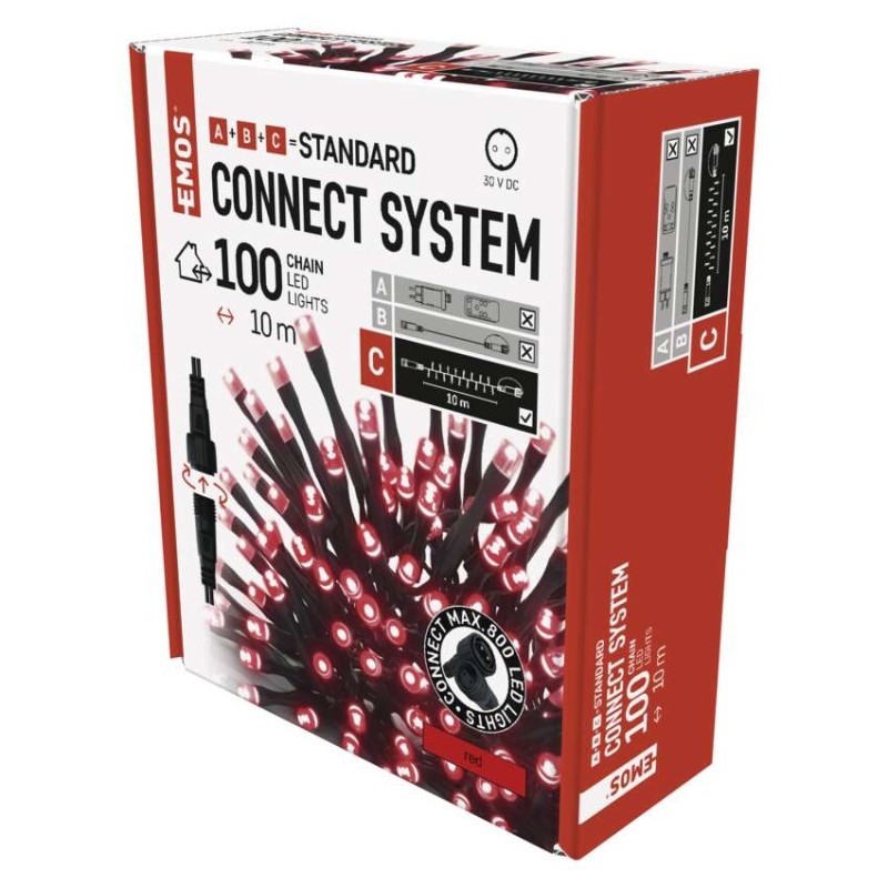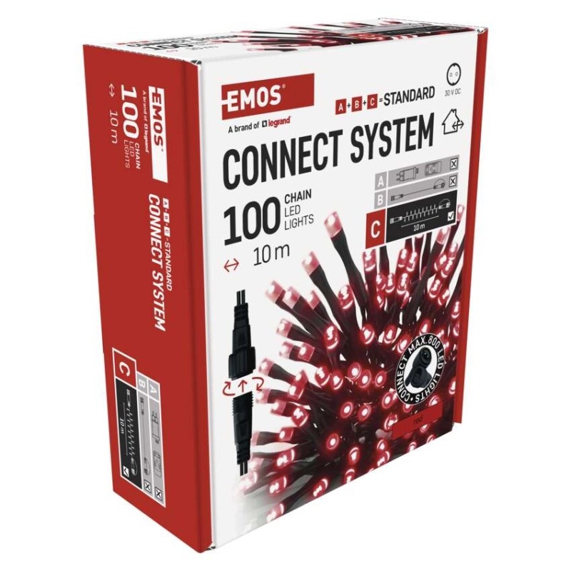 EMOS Standard LED spojovací vánoční řetěz, 10 m, venkovní i vnitřní, červená