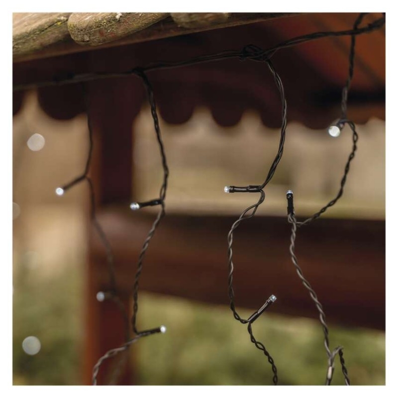 barva drátu: černá|barva světla: studená bílá|časovač: neuvádí se|dálkový ovladač: ne|délka přívodu: 10 cm|funkce: svítí|krytí: IP44|LED mezera: 10 cm|materiál: PVC|možnost propojení: ano|počet LED: 100|použití: venkovní i vnitřní|příkon: max. 5 W|prodejní obal: 1 ks, krabice|produkt: krápníky|pro výšku stromu: neuvádí se|rozměr: 2,5 × 0,9 m|tvar: klasický|typ napájení: síťový adaptér (není součástí balení)|velikost LED: 5 mm|vstupní napětí: 30 V DC|výstupní napětí: neuvádí se|záruční doba: 2 roky|životnost: 10 000 hodin