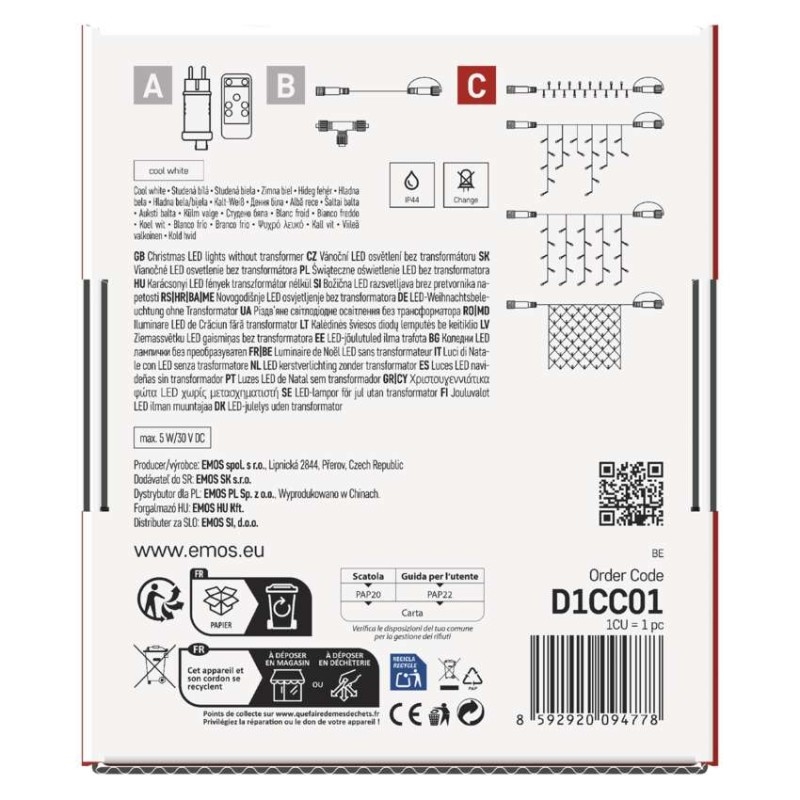 EMOS Standard LED spojovací vánoční řetěz – rampouchy, 2,5 m, venkovní, studená bílá