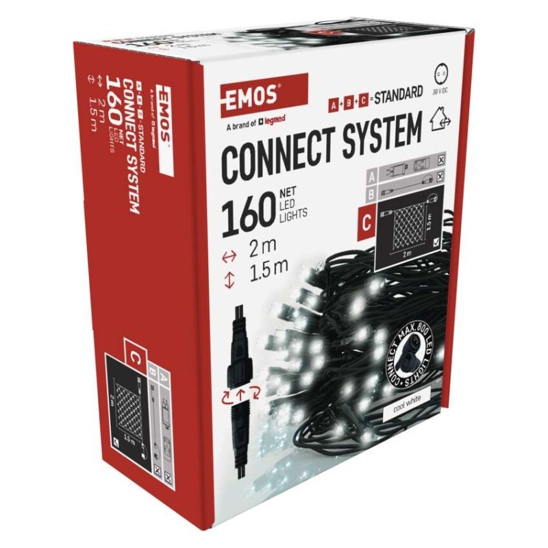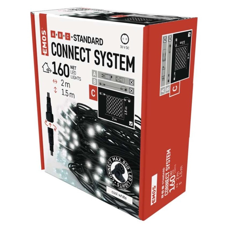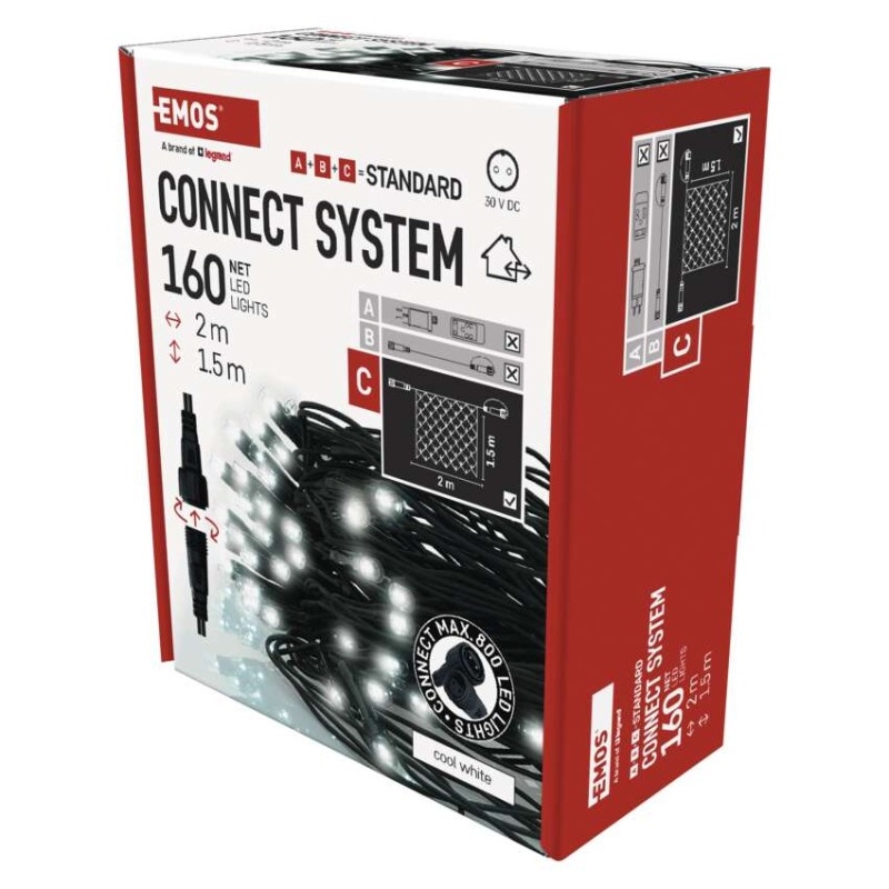 Světelné LED sítě jsou jedním z „dvojrozměrných“ řešení spojovacího osvětlení. U řetězu ve tvaru sítě jsou svěšené řetězy s LED světýlky navzájem šachovnicově propojené. Spojovací síť nejvíce vynikne na zahradních křovinách a korunách stromů. Využít je můžete i k bohatému ozdobení balkónů, střech, zdí na domě, pergol a plotů. Řetězy mezi sebou můžete vzájemně propojovat a kombinovat je s jinými LED světelnými prvky systému CONNECT SYSTEM STANDARD.