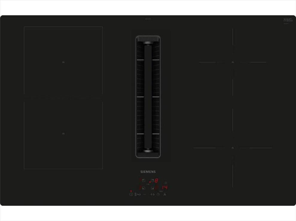 Elegantní indukční varná deska Siemens ED801BS16E v černé barvě s integrovaným odsavačem par umožňuje rychlé, bezpečné a čisté vaření. Nabízí 4 varné zóny různého výkonu s inovativními funkcemi. CombiZone nabízí větší flexibilitu díky kombinaci dvou varných zón. Ovládání touchControl umožňuje nastavit varnou zónu a další funkce dotykem. Funkce PowerBoost umožňuje zvýšit výkon až o 50 %. K dispozici je také časovač, funkce QuickStart, restart, quickstop, dvoustupňový ukazatel zbytkového tepla pro každou varnou zónu a dětská pojistka.