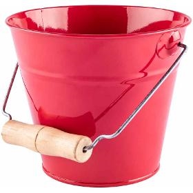 Kyblík. WOODY Zahradní kyblík červený. . Plechový kyblíček je určen nejen pro děti na pískoviště. Může sloužit rovněž jako dekorace či květináč pro pokojové rostliny nebo bylinky. Kyblík má na oušku dřevěnou rukojeť. . Věk 3+. Rozměry (VxŠxH) 13,5 x 16 x 16 cm. . Barva červená