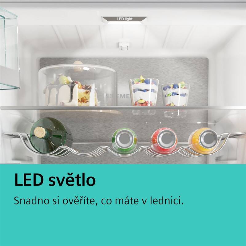 LED osvětlení krásně osvítí celý vnitřní prostor chladničky a budete mít o všem přehled. Sklon osvětlení je navržen tak, aby světlo neoslnilo a nemohlo být zastaveno potravinami.