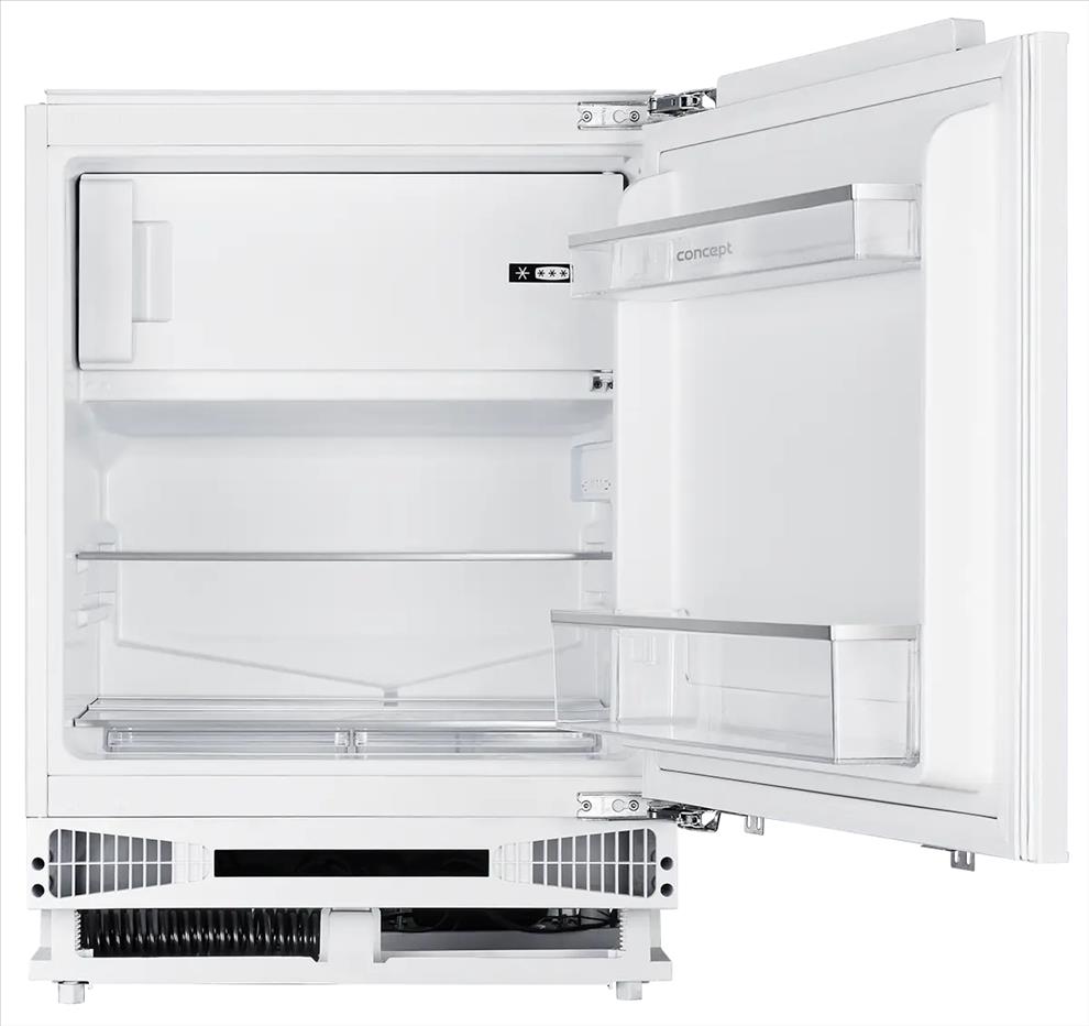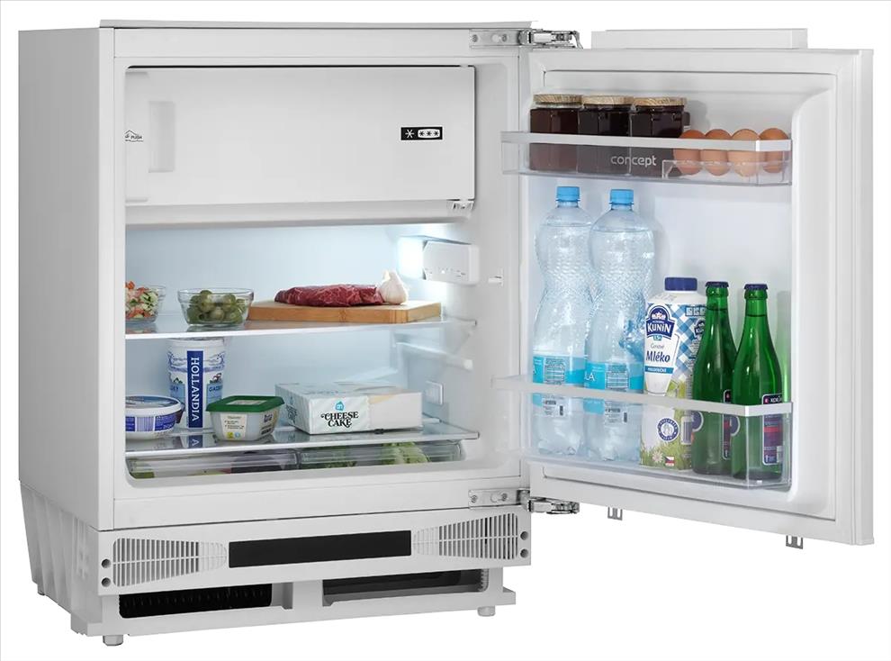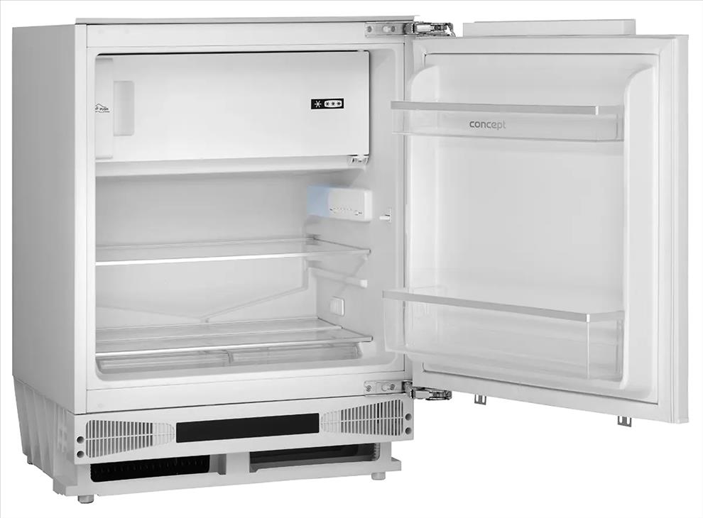 Vestavná lednice Concept LV3260 je kompaktní model s objemem 111 l vhodný pro menší domácnosti, kanceláře nebo chaty. Disponuje 16l mrazákem, úsporným LED osvětlením, invertorovým kompresorem, alarmem nedovřených dveří a možností záměny otevírání dveří.
