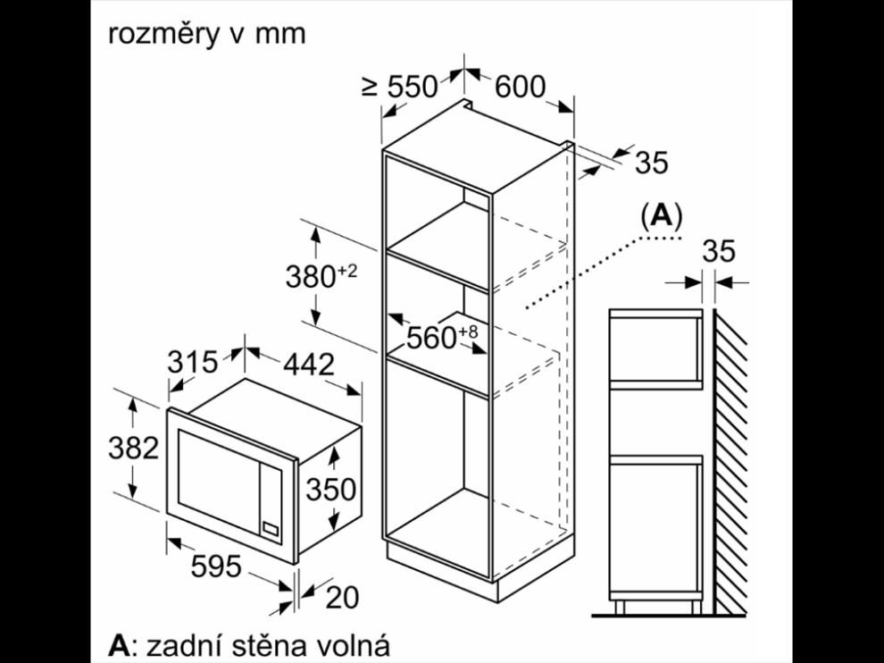 vestavný spotřebič do horní skříňky o šířce 60 cm s hloubkou min. 30 cm, pro vestavbu do vysoké skříňky o šířce 60 cm