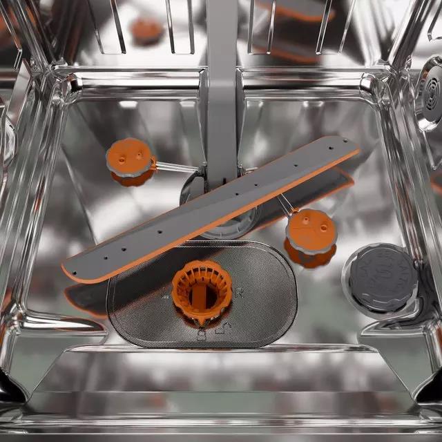 O důkladné mytí nádobí v prostoru CleanZone se starají 2 trysky, které jsou strategicky umístěné v zadní části vany. Proud vody se tak dostane přímo k odolným skvrnám v hrncích, pánvích, případně ve vysokých láhvích.
