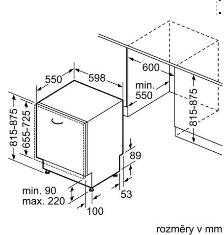 • Rozměry pro vestavbu: 81,5–87,5×60×55 cm (VxŠxH)