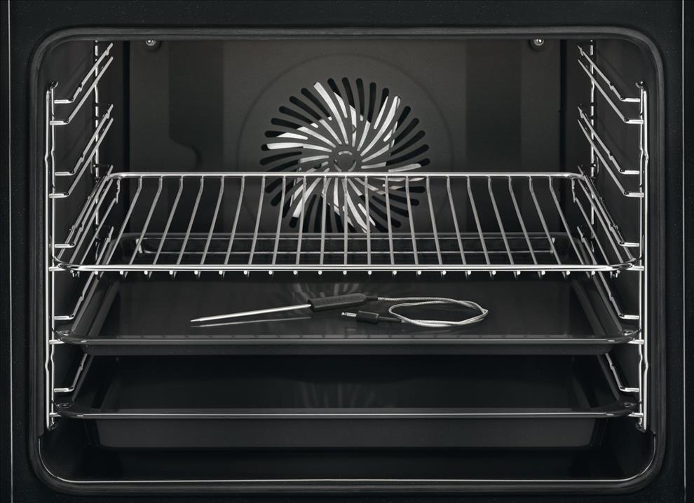 Trouba o maximálním příkonu 3500 W je vybavena speciální teplotní sondou, která umožňuje uprostřed pečení změřit teplotu pokrmu v jeho středu. Díky tomu budou vaše servírované pokrmy za každé situace dokonalé a chutné. Funguje to tak, že sondu vložíte do středu masa nebo ryby, nastavíte teplotu a jakmile bude pokrm propečený tak, jak si přejete, budete na to upozorněni.