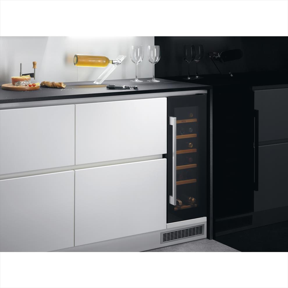 Speciální sklo chrání vzácná vína před vnějším UV paprsky, zatímco zabudované LED osvětlení zajišťuje kompletní viditelnost uvnitř vinotéky.