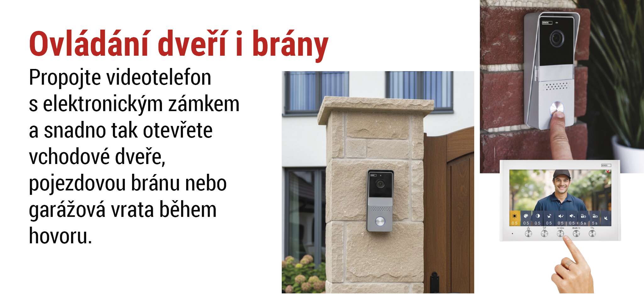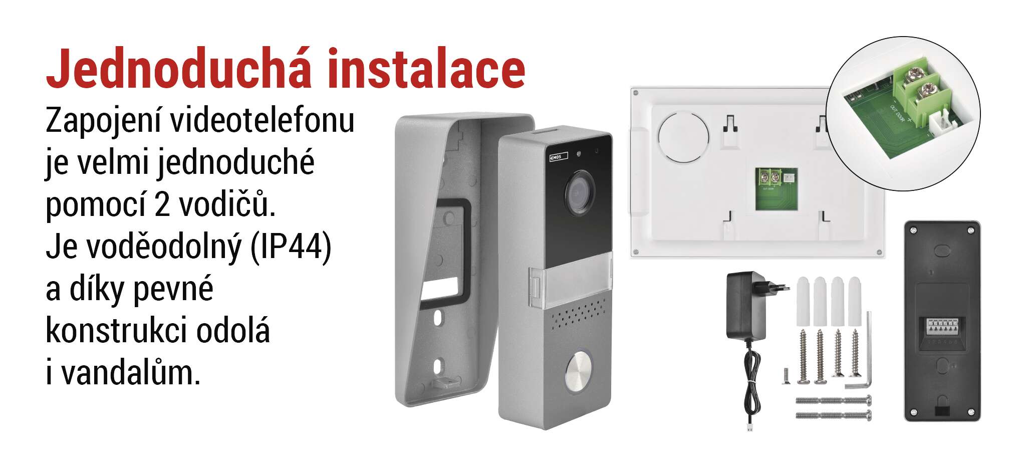 Objevte sadu videotelefonu, která spojuje moderní design, snadnou instalaci a praktické funkce pro každý den. Stačí jen 2 vodiče a během chvilky máte spolehlivého strážce u vašich dveří. Užijte si čistý obraz díky HD kameře (720p) a velkému 7" barevnému monitoru, kdy vám neunikne žádný detail – a to ani v noci díky nočnímu vidění a širokému zornému úhlu 120°. Díky možnosti ovládání elektronického zámku (např. C0030, který najdete také na našem e-shopu) jednoduše otevřete branku přímo z monitoru, bezpečně a bez nutnosti odcházet ke vstupu. Pevná a voděodolná konstrukce venkovní jednotky v metalově šedé barvě zajistí dlouhou životnost i elegantní vzhled vašeho vstupu včetně místa na jmenovku.