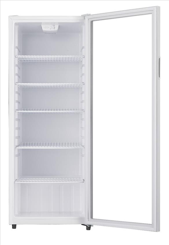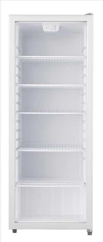 Volně stojící moderní chladící vitrína o objemu 245l a s 5 drátěnými policemi.