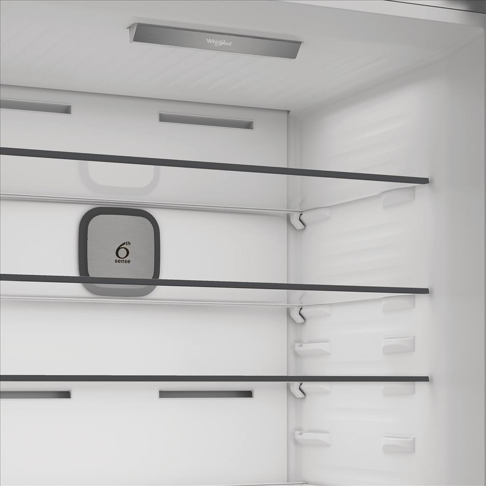 Přednosti této volně stojící kombinované chladničky Whirlpool: vysoký spotřebič, který vyhoví potřebám vaší rodiny. Senzory 6. SMYSL, které automaticky snižují teplotu uvnitř spotřebiče po přidání nových potravin, čímž snižují spotřebu energie. Robustní přihrádka na lahve pro bezpečné uložení lahví.