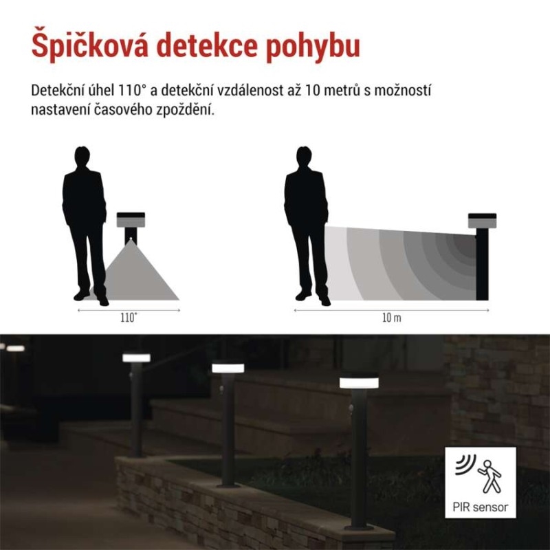 Zahradní svítidla řady TERION představují ideální volbu pro ty, kteří hledají kombinaci výrazného vzhledu a spolehlivého výkonu. Jejich moderní design dodá každému venkovnímu prostoru osobitý charakter. V této řadě naleznete jedno nástěnné a dvě sloupková světla, všechny s integrovaným PIR senzorem. Zajišťují bezdrátový provoz bez potřeby připojení k elektrické síti. Jsou ideální pro každého, kdo chce mít krásně osvětlenou zahradu s důrazem na úsporu a jednoduchost.