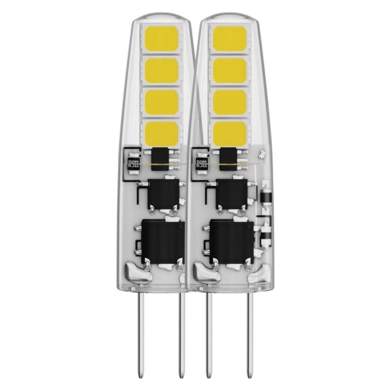 barva světla: teplá bílá|energetická třída: F|index podání barev (CRI): 80|kompatibilita: neuvádí se|náhrada za žárovku: 21 W|napětí: 12 V|notifikace do mobilní aplikace: neuvádí se|ovládání hlasovými asistenty: neuvádí se|patice (uchycení žárovky): G4|počet čipů: neuvádí se|počet spínacích cyklů: 25 000|podporované OS: neuvádí se|přenosová frekvence: neuvádí se|příkon: 1,9 W|prodejní obal: 2 ks, krabička|protokol: neuvádí se|řada: CLASSIC|rozměr: 36 × 10 × 10 mm|stmívatelná: ne|světelná účinnost: 105 lm/W|světelný tok: 200 lm|technologie: LED|teplota chromatičnosti: 3 000 K|tvar: JC|typ čipů: SMD|účiník: 0,71|úhel vyzařování: 300°|záruční doba: 3 roky|životnost: 30 000 hodin
