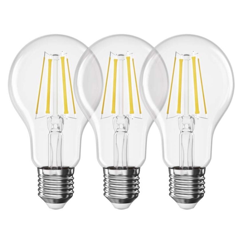 barva světla: neutrální bílá|energetická třída: D|index podání barev (CRI): 80|kompatibilita: neuvádí se|náhrada za žárovku: 60 W|napětí: 230 V~/50 Hz|notifikace do mobilní aplikace: neuvádí se|ovládání hlasovými asistenty: neuvádí se|patice (uchycení žárovky): E27|počet čipů: 4|počet spínacích cyklů: 25 000|podporované OS: neuvádí se|přenosová frekvence: neuvádí se|příkon: 5,9 W|prodejní obal: 3 ks, krabička|protokol: neuvádí se|řada: FILAMENT|rozměr: 60 × 60 × 108 mm|stmívatelná: ne|světelná účinnost: 137 lm/W|světelný tok: 806 lm|technologie: LED|teplota chromatičnosti: 4 000 K|tvar: A60|typ čipů: COB|účiník: 0,50|úhel vyzařování: 360°|záruční doba: 3 roky|životnost: 25 000 hodin